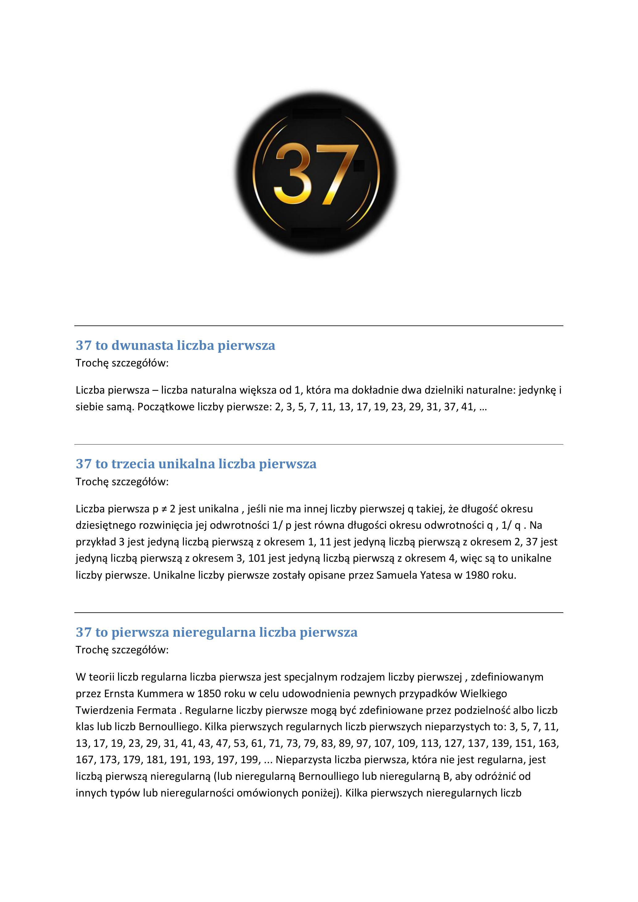 37 to trzecia unikalna liczba pierwsza