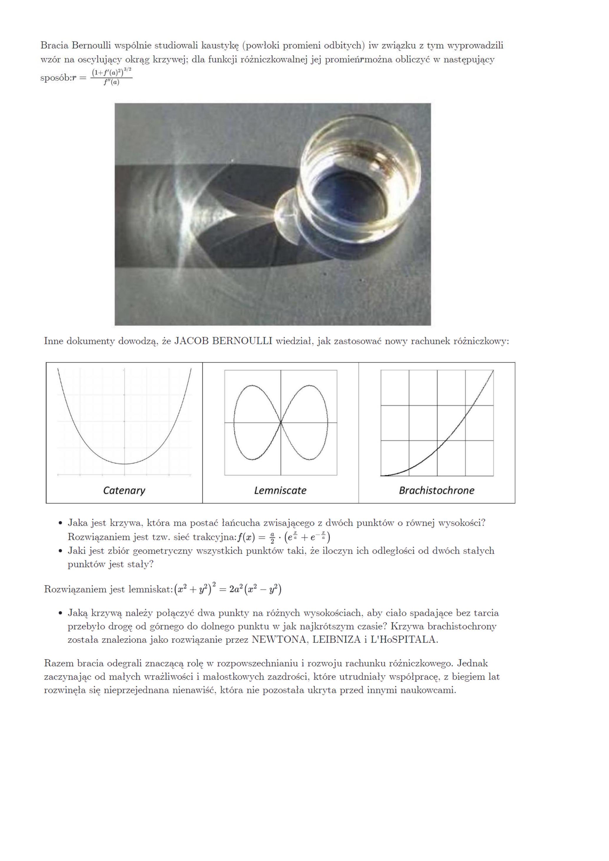 Inne dokumenty dowodzą, że JACOB BERNOULLI wiedział, jak zastosować nowy rachunek różniczkowy: