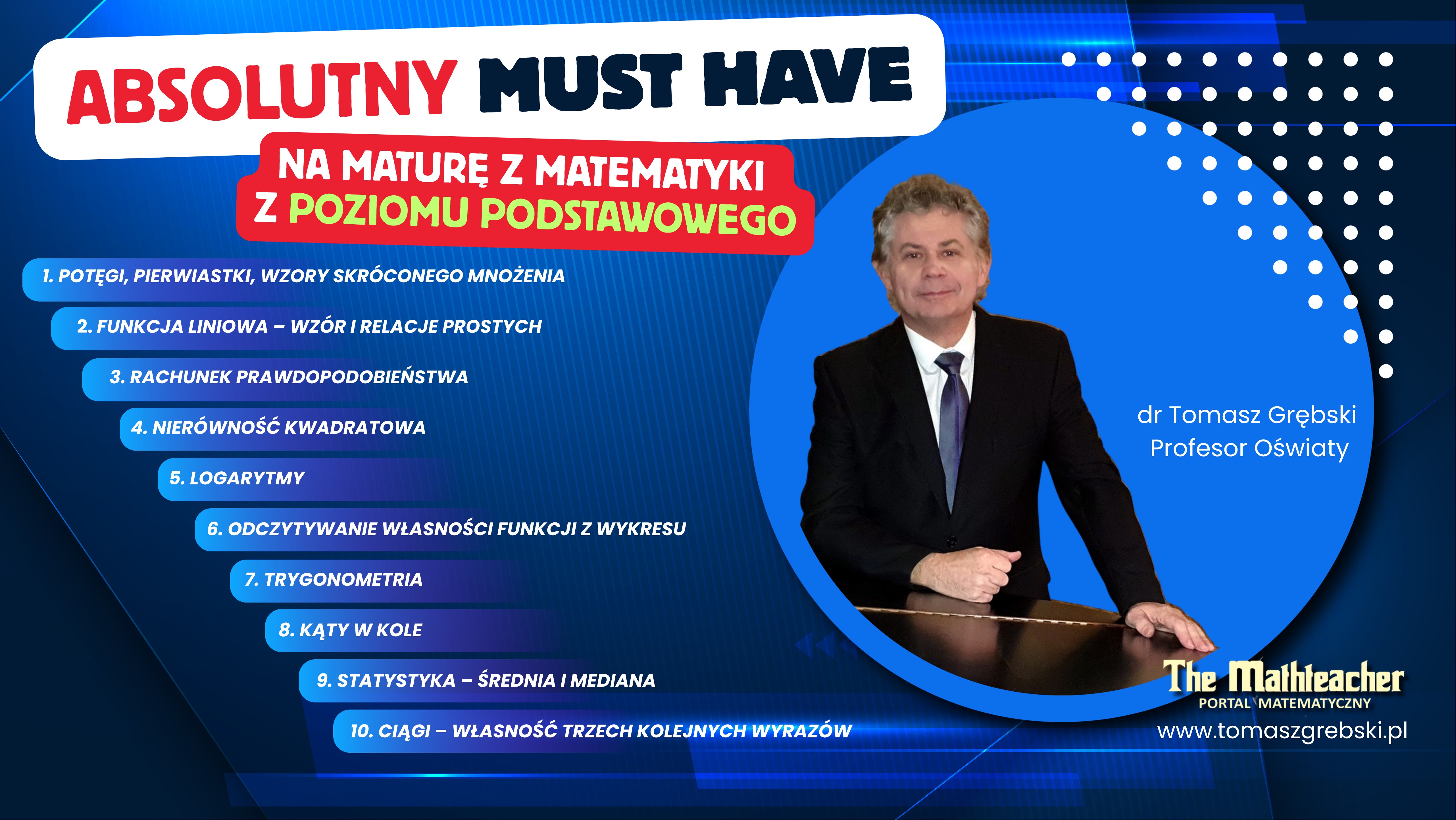 Na podstawie analizy wszystkich arkuszy CKE z matematyki na poziomie podstawowym od 2005 roku okazuje się, że opanowanie poniższych zagadnień to gwarantowane 15 punktów (30%) i zdana matura.