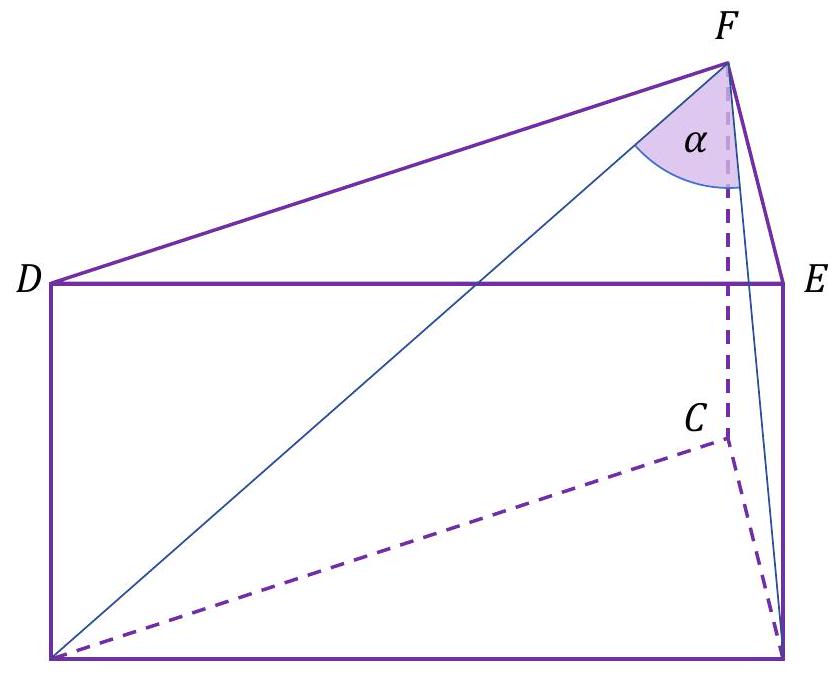 Stosujemy do trójkąta \(A B F\) twierdzenie cosinusów, a następnie korzystamy z twierdzenia Pitagorasa i otrzymujemy: